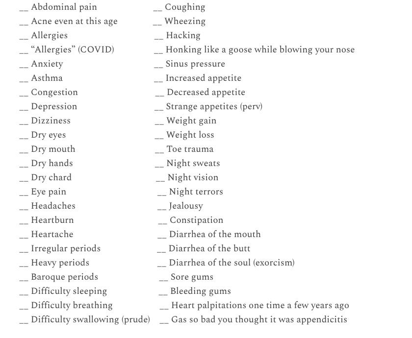 Check all that have ever applied—EVER. If you check more than four, calm down. You’re not that special.